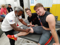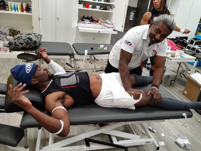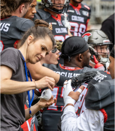 Unsere Therapeuten Deepa Senarath und Dominika Gallus haben in der Saison 2024 die Footballer der Cologne Centurions betreut.